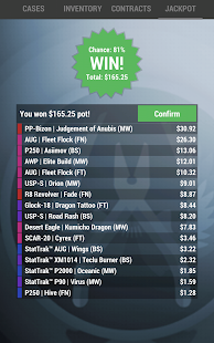 App consists of 10 tabs - Cases, Inventory, Contracts, Jackpot, Coinflip, Roulette, Shop, Collection, Upgrader and Trading. To switch tab simply tap on its name.